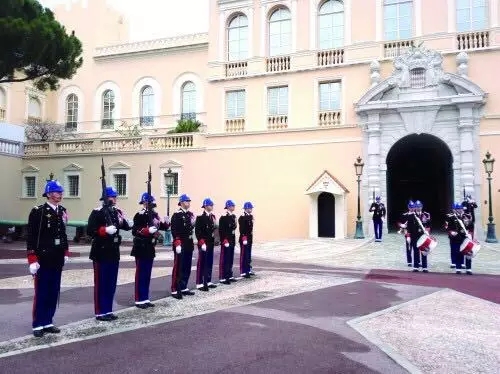 現(xiàn)任摩納哥大公阿爾貝二世,是前任大公蘭尼埃三世與格蕾絲·凱利之子。摩納哥王宮位于國境內(nèi)的一座山頂。每天中午12點左右,都會有衛(wèi)兵換崗儀式。雖然這個國家的王宮衛(wèi)隊僅有寥寥幾十人,但并不影響衛(wèi)兵們專注嚴肅地完成任務(wù)。正午時分,隨著略顯喜感的王家樂隊演奏的進行曲響起,一組衛(wèi)兵從不遠處走來,與正在執(zhí)行任務(wù)的另一組衛(wèi)兵相互敬禮,并進行儀式:舉槍,托槍,放槍;舉槍,托槍,放槍……如此反復(fù)十幾輪,其間伴隨著衛(wèi)隊長富有節(jié)奏感的口號聲。在場的觀眾都被逗樂了。作為來到摩納哥必看的項目之一,這個換崗儀式能給人帶來足夠的歡樂。
