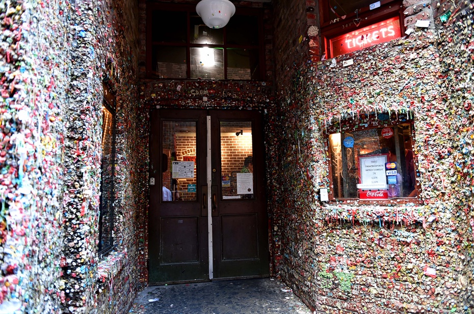 西雅圖的口香糖墻名列世界細菌最多的五大景點中的第二位,西雅圖市場劇院有一項古怪的傳統(tǒng),雖然很臟但挺有趣的:一面滿是口香糖的巨墻。在上個世紀90年代,旅行者們開始在排隊等候的時候把他們嚼過的口香糖粘在這面墻上,十年以來形成了一道五彩繽紛但有點讓人反胃的獨特風景。一些大膽的游客甚至還把他們嚼過的口香糖捏出形狀來。