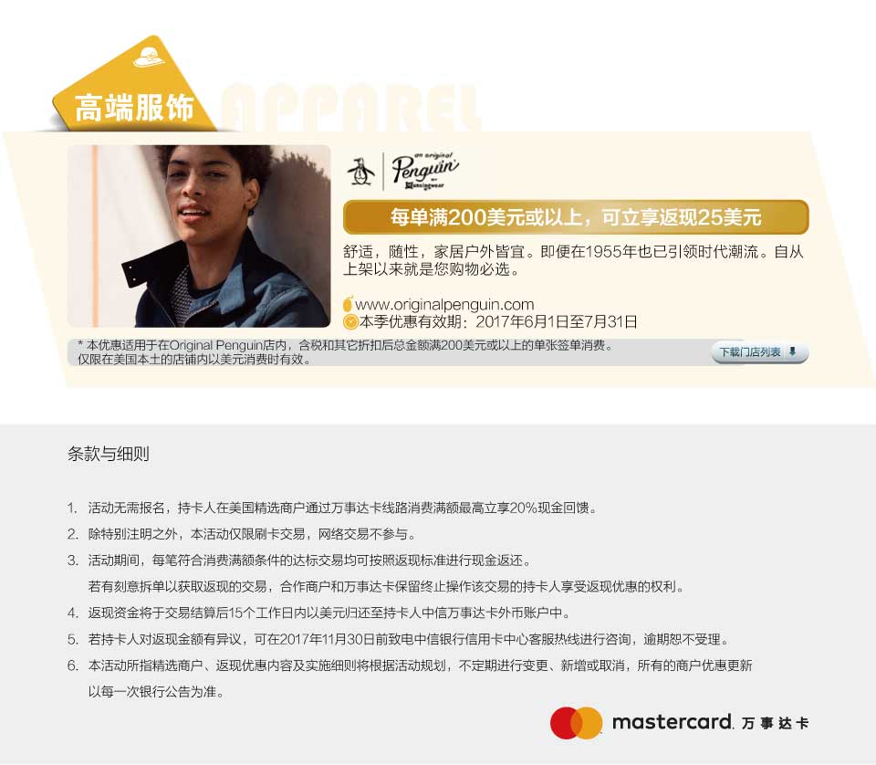 中信萬(wàn)事達(dá)卡美國(guó)享20%返現(xiàn)