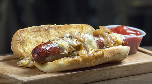 熱狗是火腿腸的一種吃法。夾有烤腸的整個(gè)面包或者三明治也可以直接稱作熱狗。和狗這個(gè)動(dòng)物本身沒有什么聯(lián)系,只是面包的一種稱呼。吃熱狗的時(shí)候可以配上很多種類的配料,比如番茄醬、美乃滋、芥末、漬包心菜、漬白蘿卜、洋蔥屑,生菜屑、番茄(切片,切屑或切塊)和辣椒等等。熱狗還有其他種的變化。加起司的叫做“起司熱狗”,或是直接叫“起司狗”,加了辣肉醬(chili)的叫做“辣狗”。前面兩種全加的就叫“辣起司狗”。裹了玉米漿的油炸熱狗,而且插了根小竹棒的叫做玉米狗。