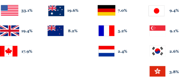 趨勢三:美英加澳等英語系國家仍是受到中國學生青睞