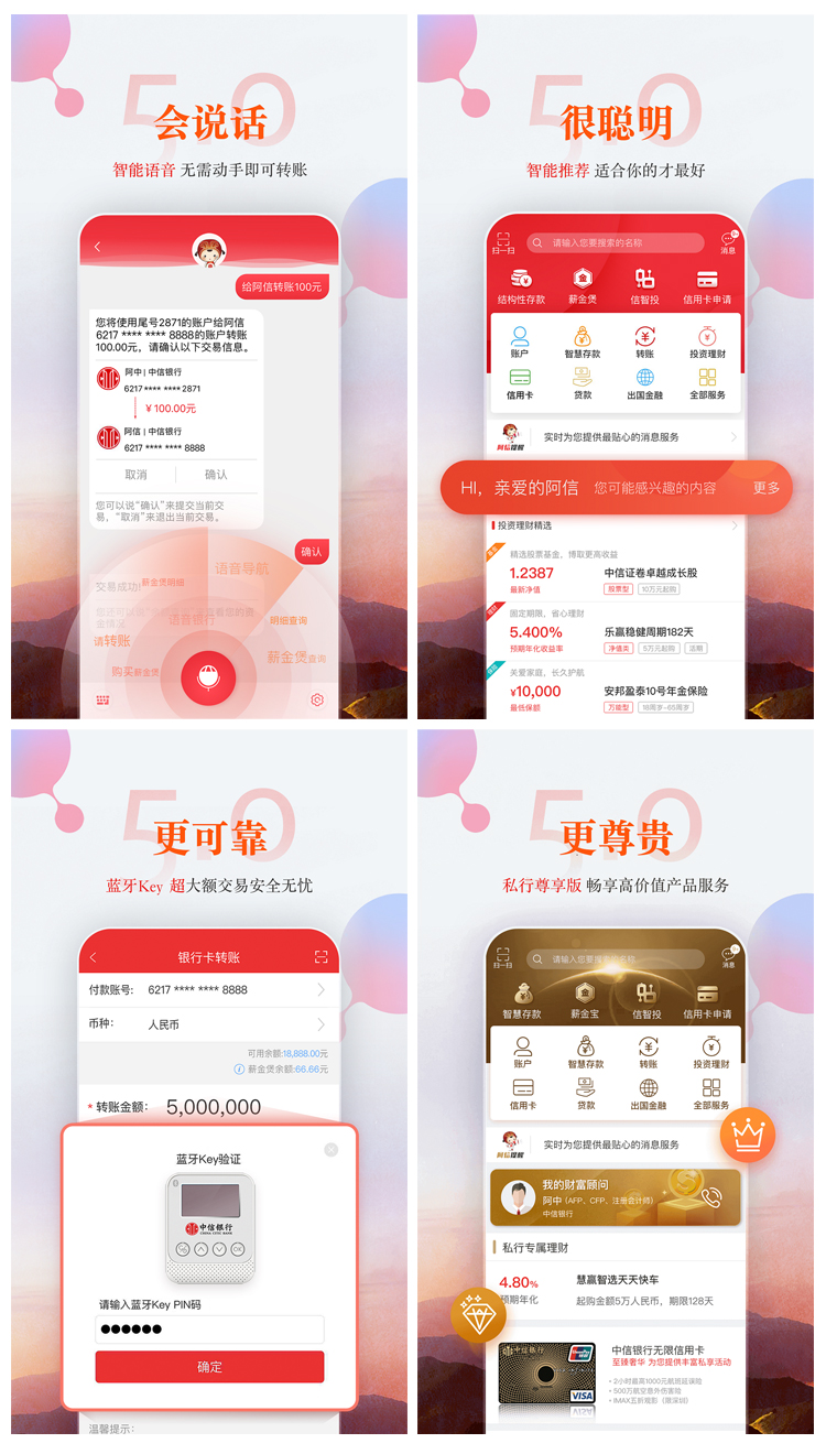 目前中信銀行手機銀行全面支持Android、iOS移動設(shè)備。